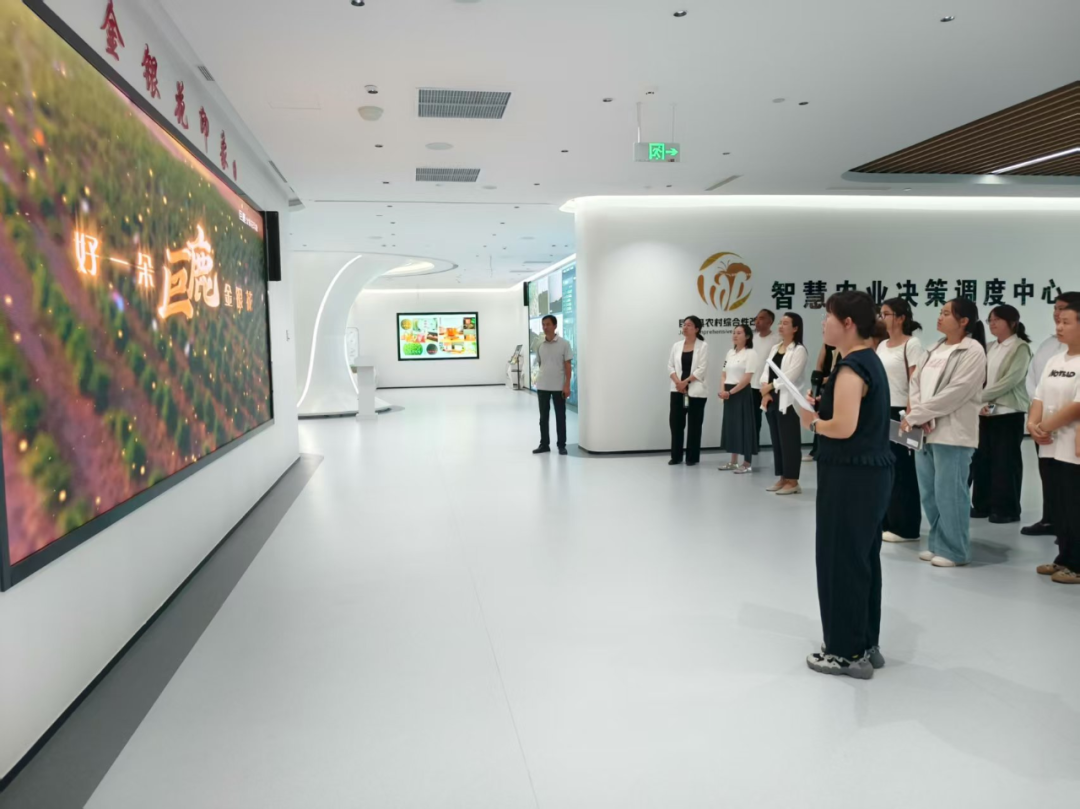 一行人走进桑田金银花专业合作社,了解金银花标准化种植模式,参观了金银花烘干、分拣、包装初加工等生产线。随后,探访巨鹿县智慧农业调度决策中心,物联网、大数据等技术在金银花种植中的应用让大家眼前一亮。通过实时监测土壤湿度、温度等数据,实现精准灌溉和科学管理金银花种植。最后,参观了河北省金银花行业协会并围绕金银花产业发展进行座谈,商协会负责人介绍巨鹿县金银花产业发展现状,大学生围绕“金银花+文旅”等创新模式进行交流。