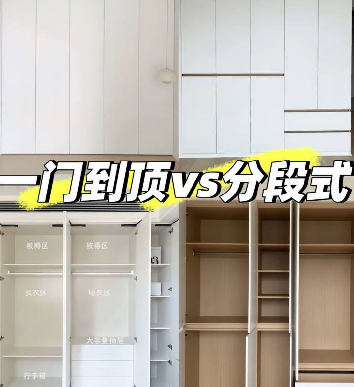 大家装修的时候千万不要再选择一门到顶的柜门了,价格贵,缺点多,容易变形,不如选择分段式柜门,性价比更高。