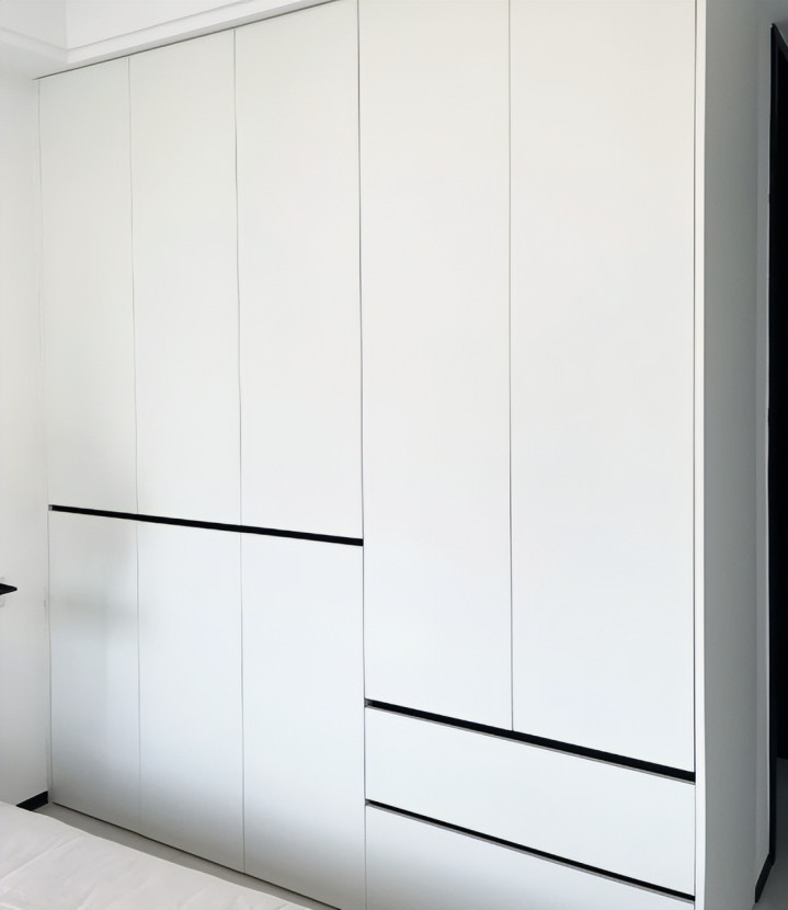 我给他们的推荐永远都是不要做一门到顶柜门,而是选择分段式柜门。之所以选择分段式柜门,其实很简单,主要是因为分段式柜门优点真的太多了。