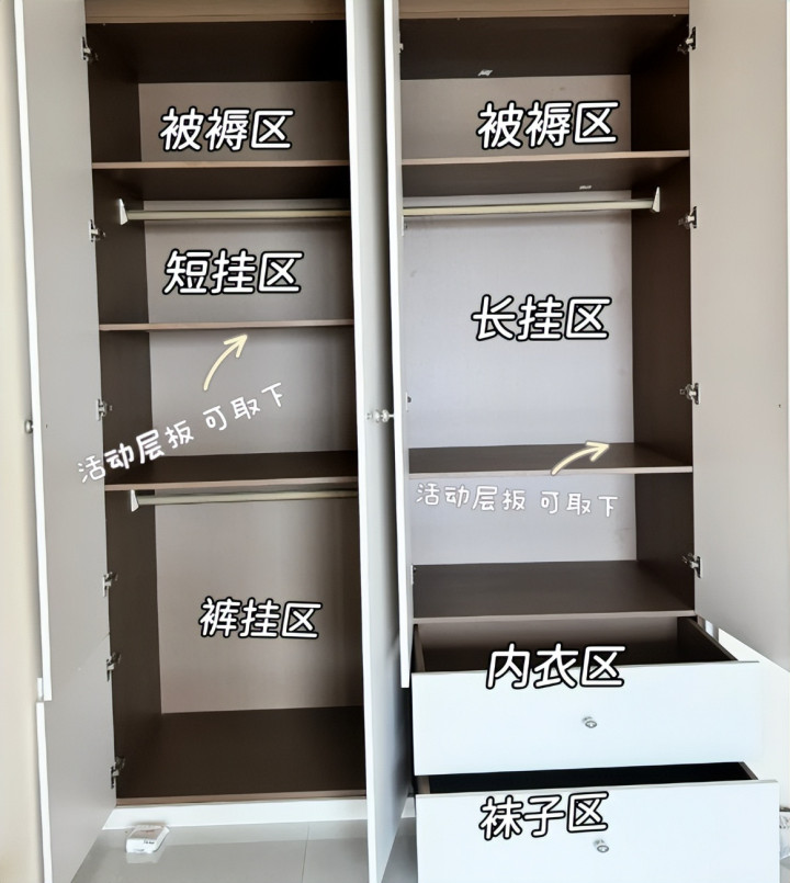 衣柜每个区域都被划分好了,更实用。