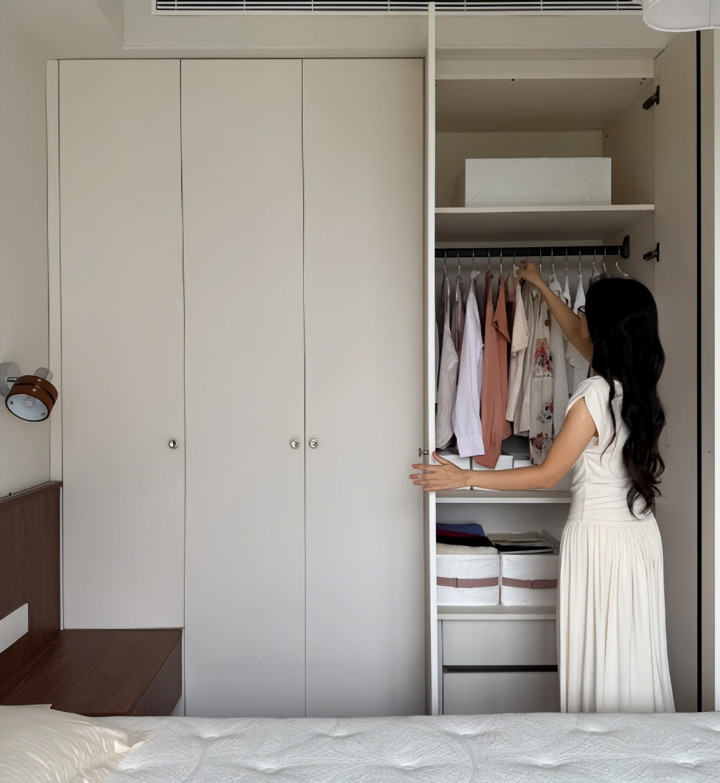 我身边很多朋友做了一门到顶的柜门,都觉得每一次打开衣柜特别麻烦。